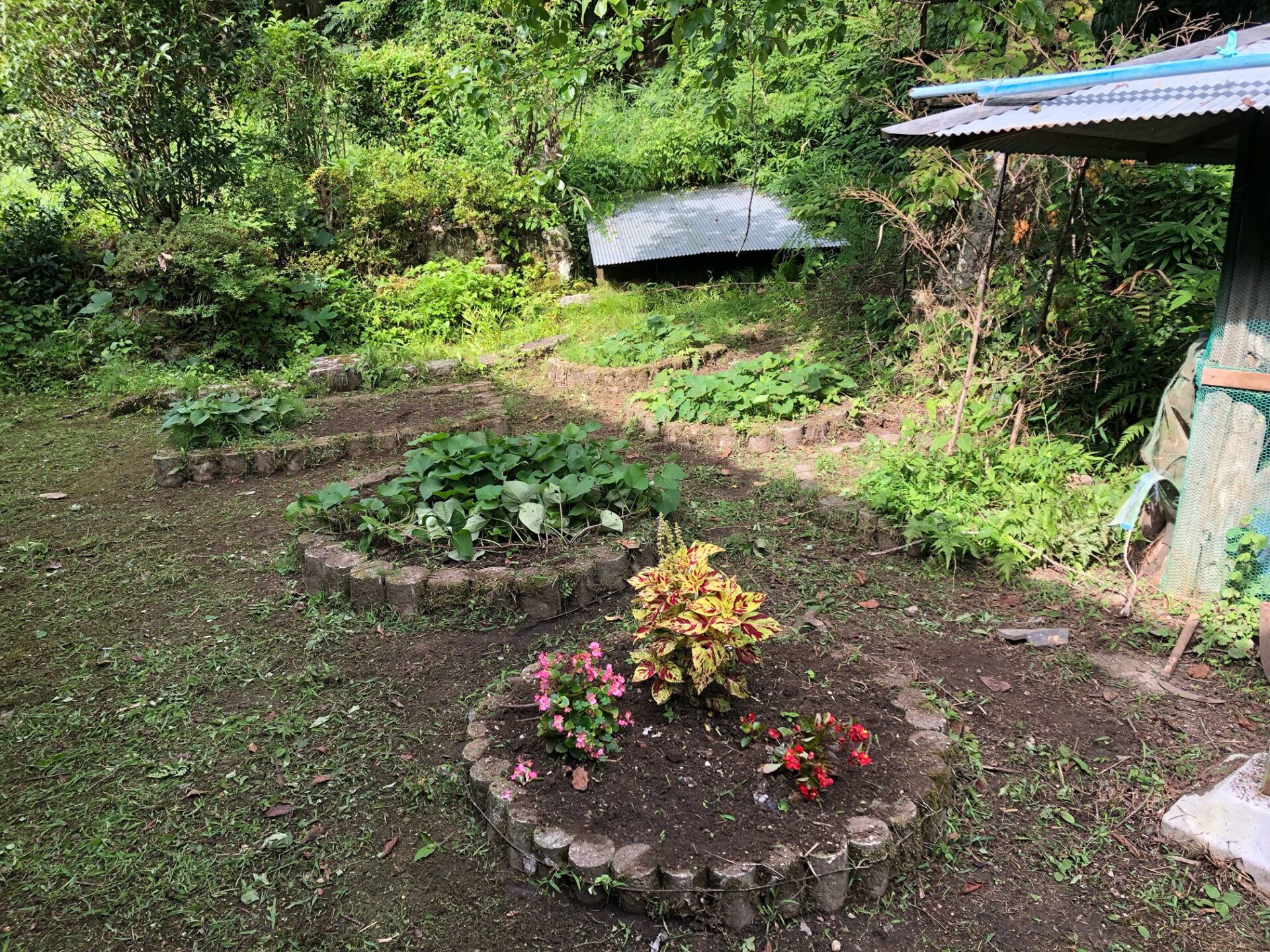 父母が植えてくれた花とさつまいもは順調、秋には焼き芋の予定