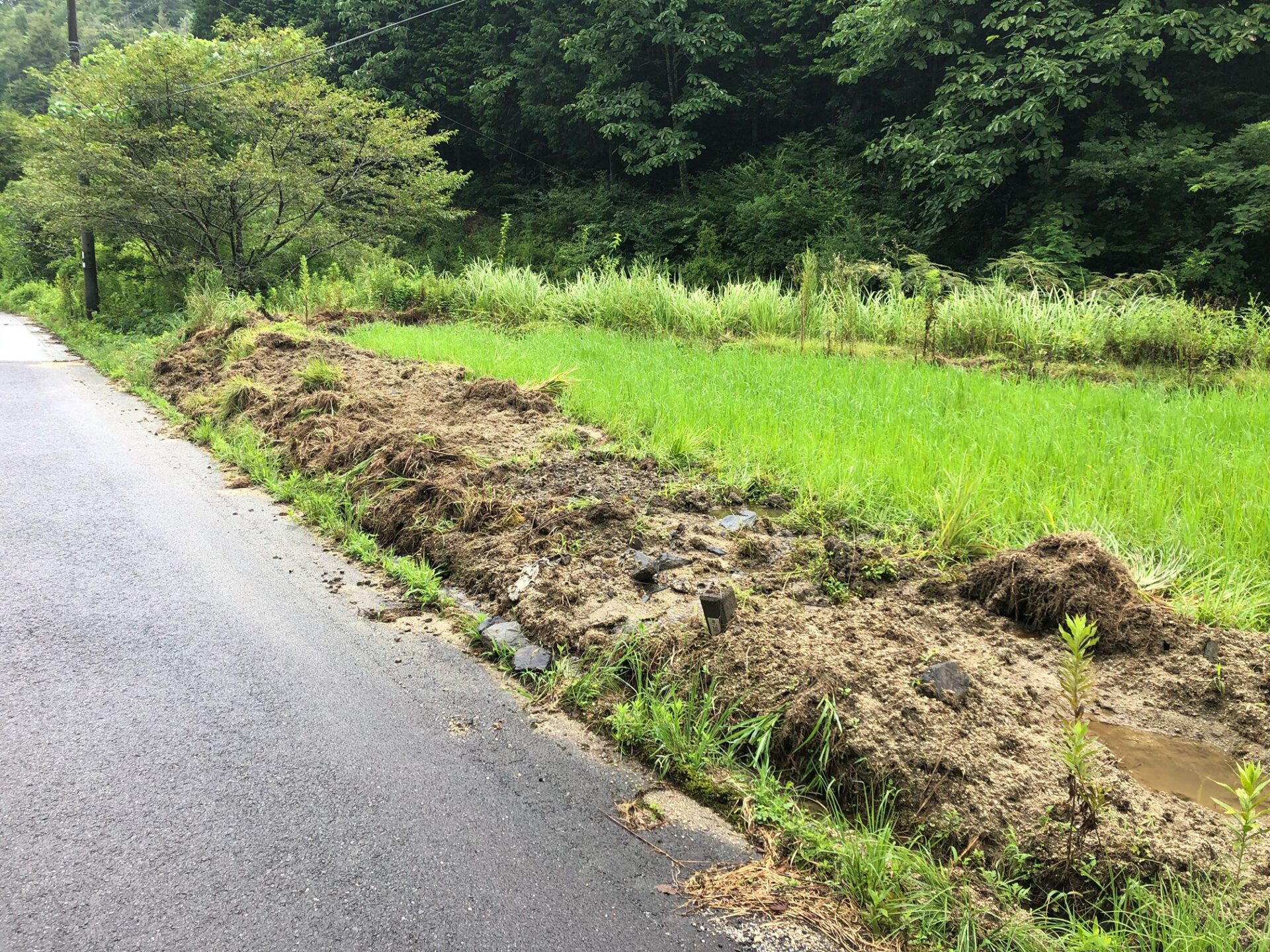 田んぼへの水路までぐちゃぐちゃに、、、